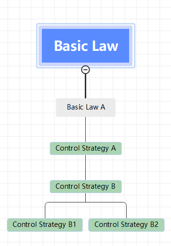 The method is simple: use a tree structure (this is mandatory). Place your Control Strategy A under Basic Law A. If there are highly related sub-strategies, place them under Control Strategy A.